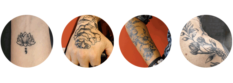 Le tatouage floral ne symbolise rien d’autre qu’une histoire d’amour, qu’elle soit espérée, avérée ou contrariée. C’est un style universel, prisé depuis longtemps par les femmes comme par les hommes (le traitement pouvant différer entre les deux genres), toujours élégant et par essence indémodable. C’est également, d’un point de vue personnel, un plaisir à dessiner, que ce soit une simple marguerite ou un bouquet varié associé à des branches, des tiges, des feuilles, des arabesques ou même des figures iconiques telles des trois-mâts, des dragons, ou … des ‘têtes de mort’.